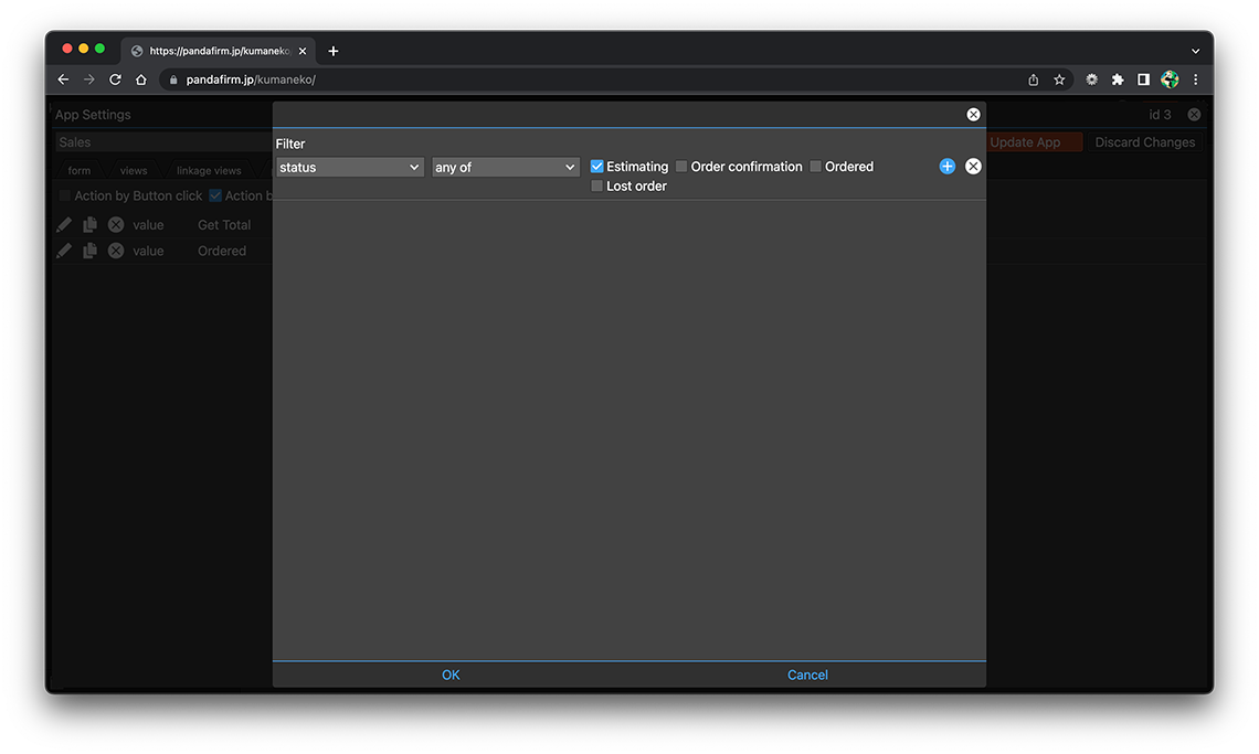 If you configure a condition, you can execute the action only when the record meets the set condition. Click the filter button to set the conditions for the record for which you want to perform the action.