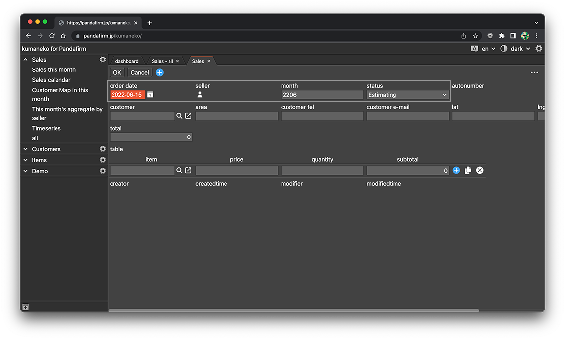 If you specify an in-table field in the condition of the record in which the action is executed and the in-table field is targeted for execution, the range is limited to the table row that meets the condition.