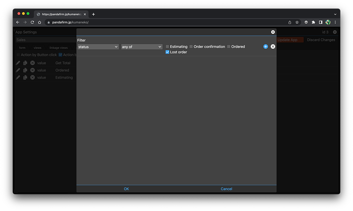 After completing the settings, click the "OK" button at the bottom of the screen, and then click the "Update App" button on the app settings screen.