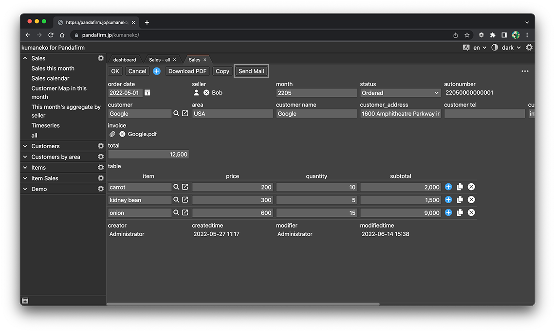 The action is executed by clicking the button placed on the record add screen, edit screen, or read-only list view.