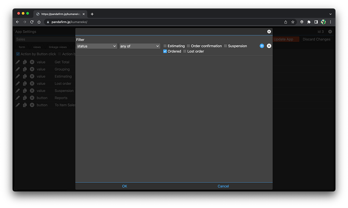 After completing the settings, click the "OK" button at the bottom of the screen, and then click the "Update App" button on the app settings screen.