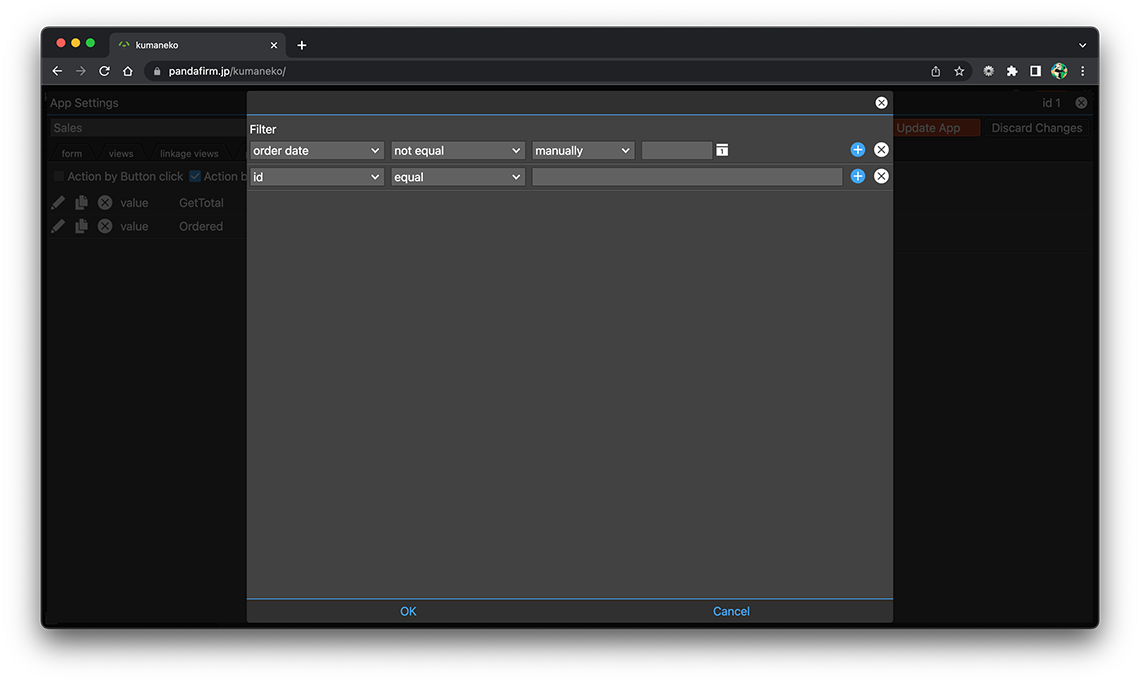 If you configure a condition, you can execute the action only when the record meets the set condition. Click the filter button to set the conditions for the record for which you want to perform the action.