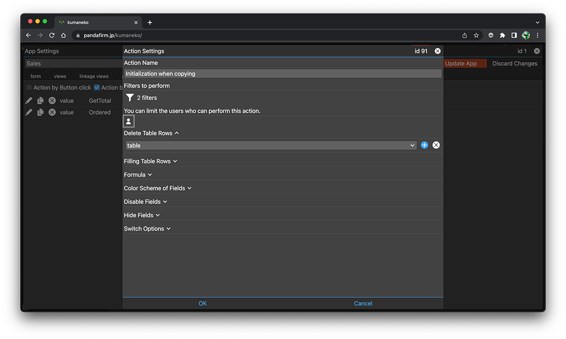 After completing the settings, click the "OK" button at the bottom of the screen, and then click the "Update App" button on the app settings screen.