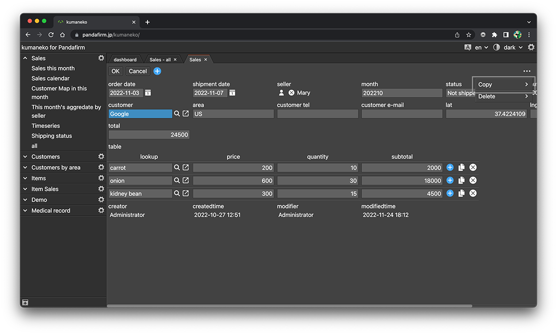 In the case of a button trigger action, the action is executed by clicking the button placed on the record add screen, edit screen, or read-only list view.