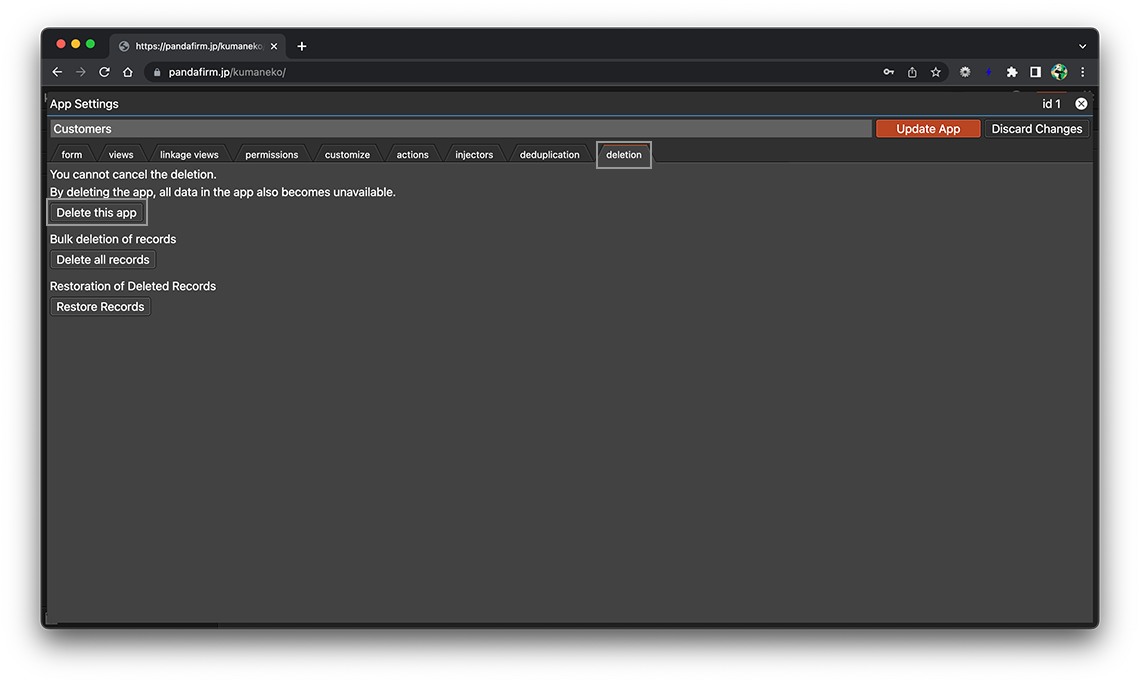 If you want to delete all registered records at once, click the "Delete all records" button.