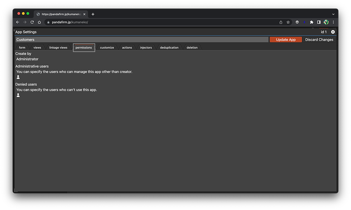 Select the "permissions" tab on the app settings screen to set the permissions to the app.