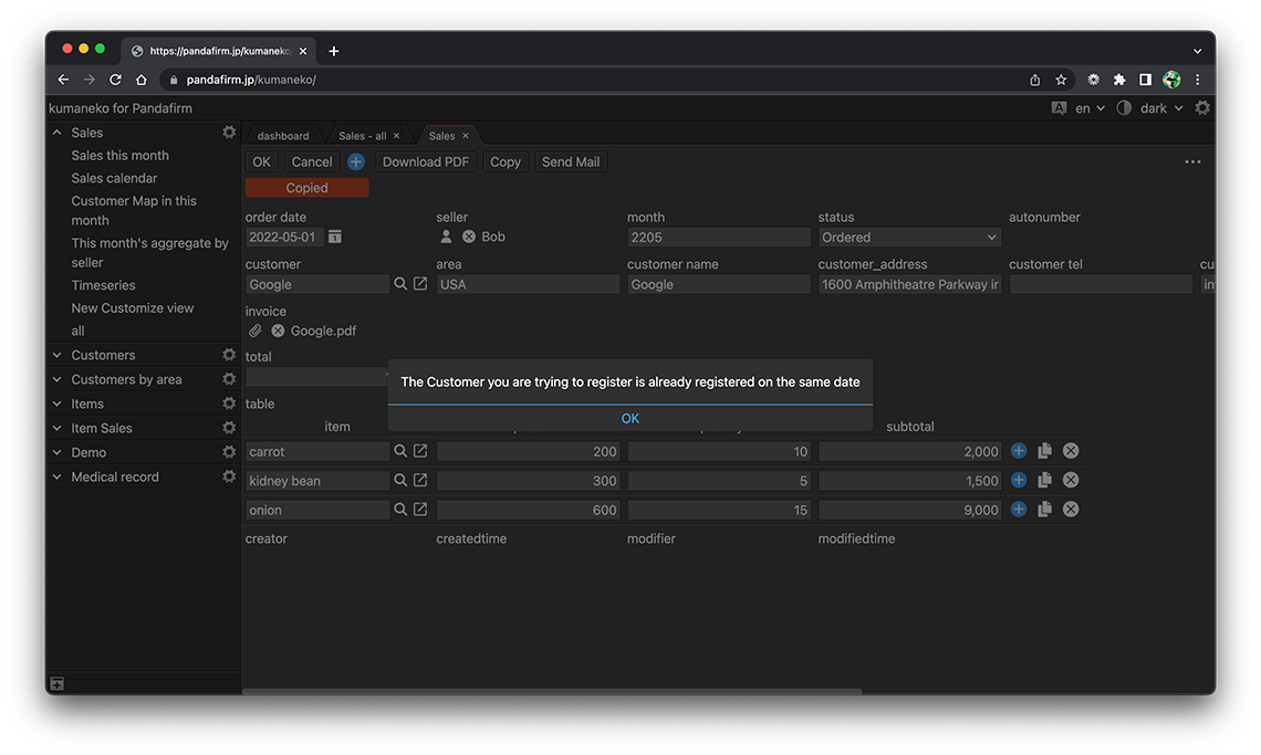 When you save a record, you will receive an error message if a record that matches the criteria already exists.