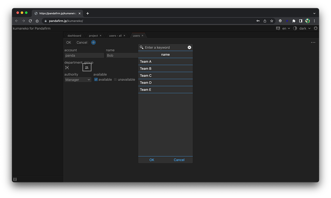 A group is a collection for classifying users by job title, role, etc. in addition to departments. Feel free to add it by following the steps below.