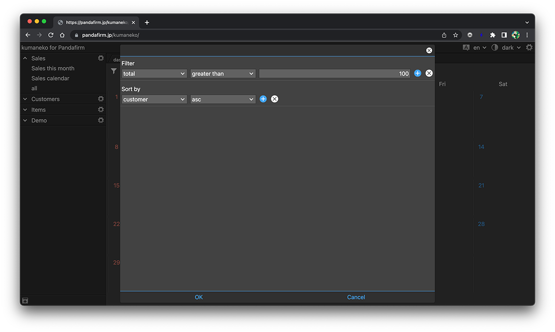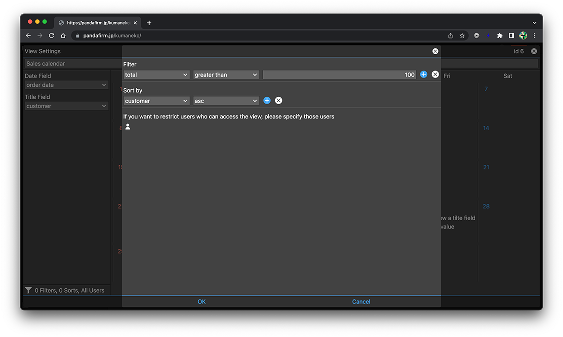 You can also change the conditions and order of the records to be displayed from the view screen.