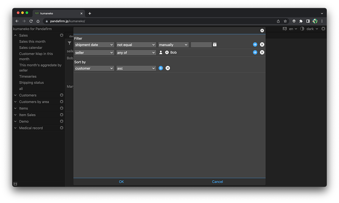 Click the filter button at the bottom left of the screen to set the conditions for the records to display.