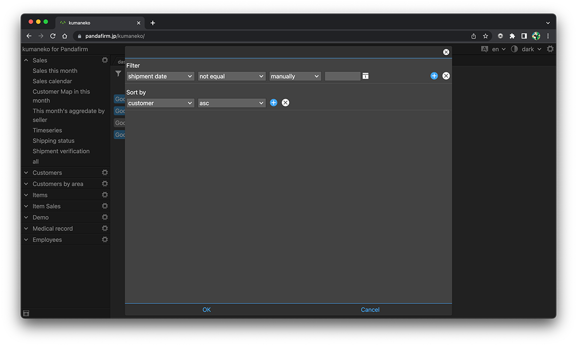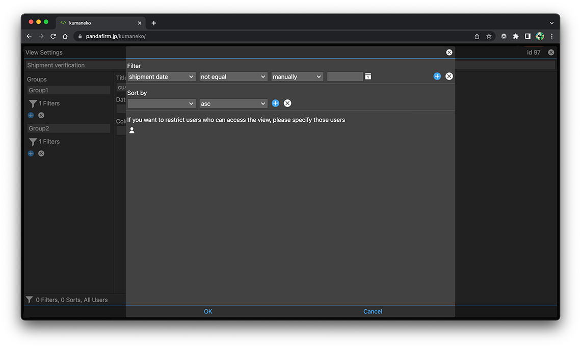 Click the filter button at the bottom left of the screen to set the conditions for the records to display.