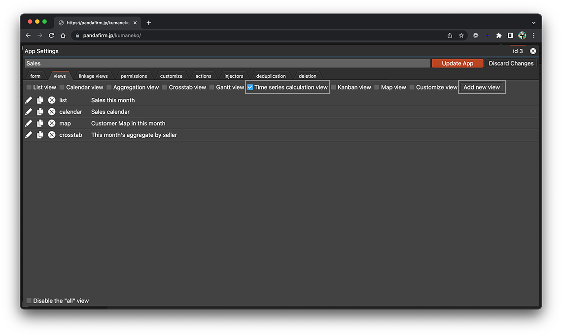 Check "Time series calculation view" from the view type and click the "Add new view" button.