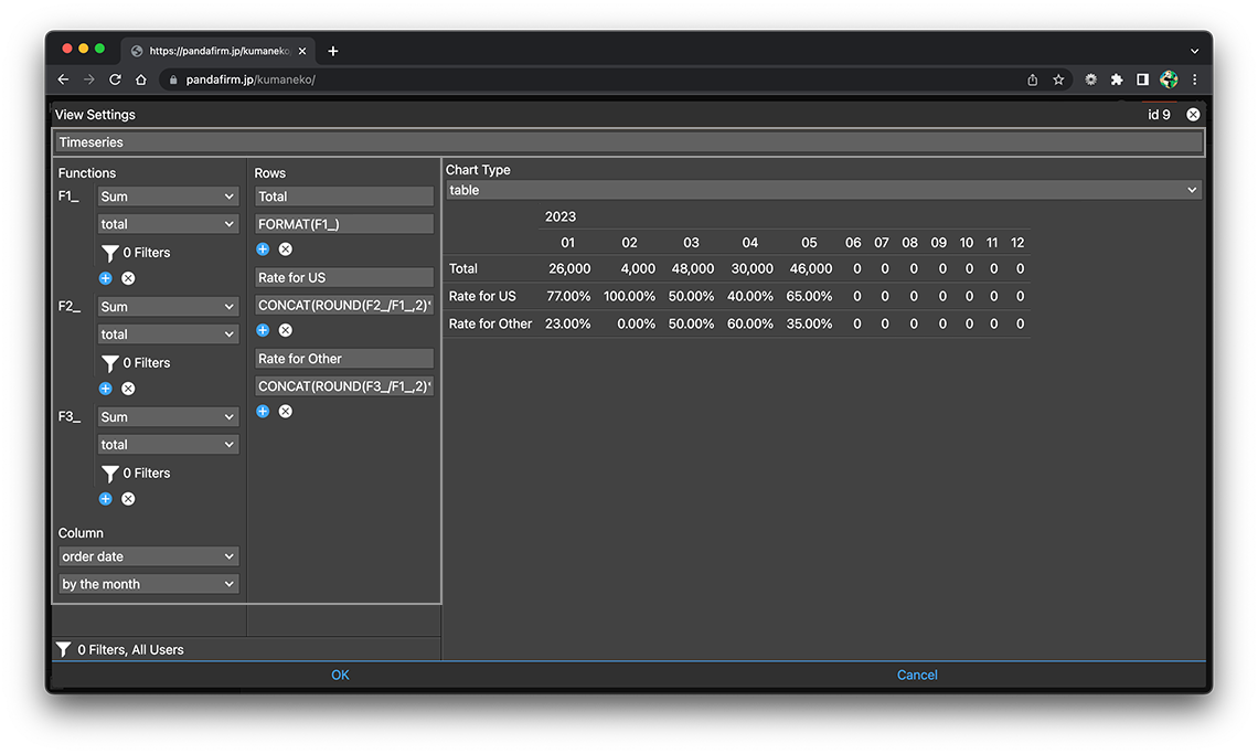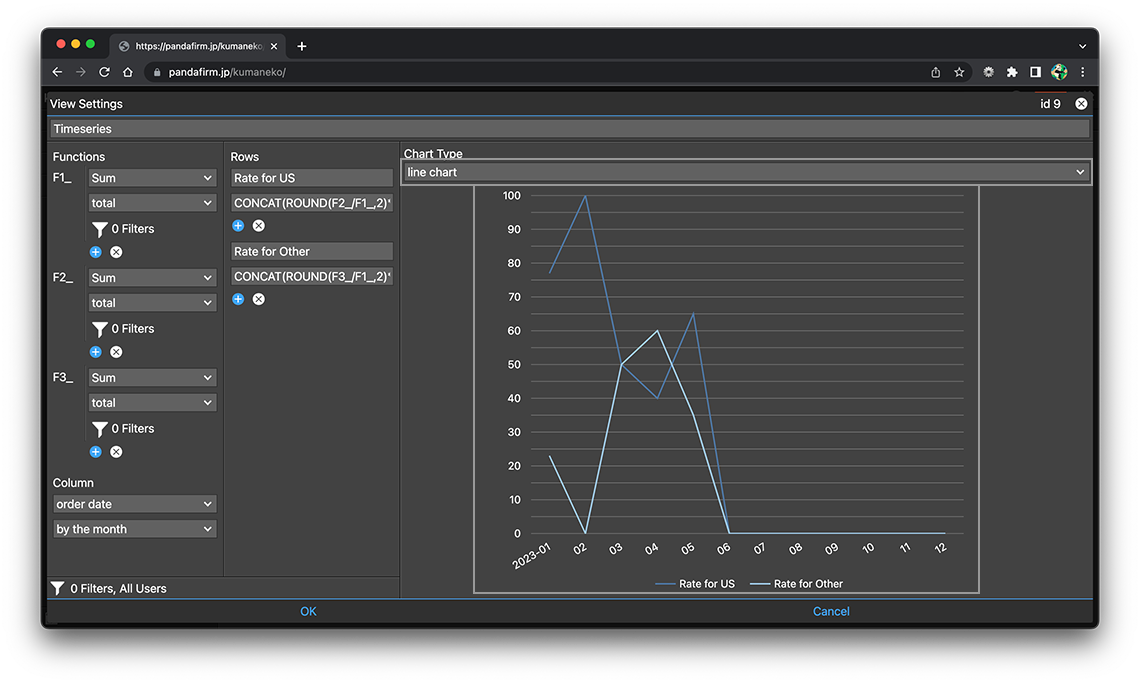 Enter the row title and formula. You can also combine multiple datasets defined in "Function".