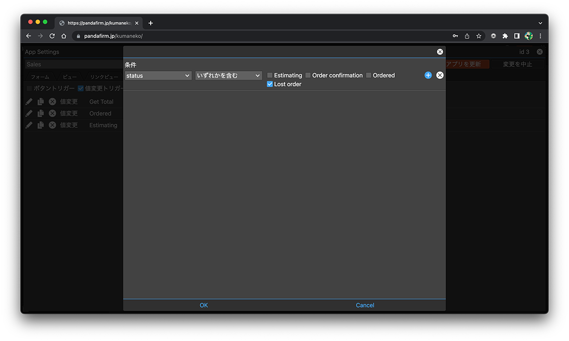 設定が完了したら、「OK」ボタンを押下し、アプリ設定画面の「アプリを更新」ボタンを押下します。