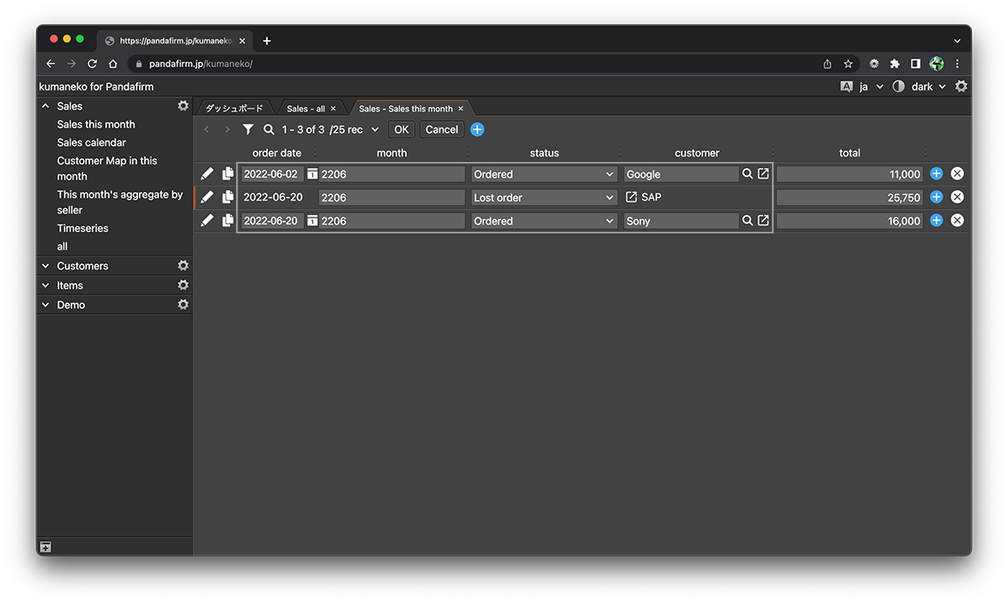 レコード追加画面や編集画面を開いたり、フィールドを編集したりしたタイミングで、アクションが実行されます。