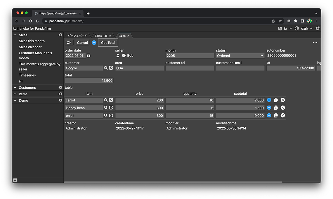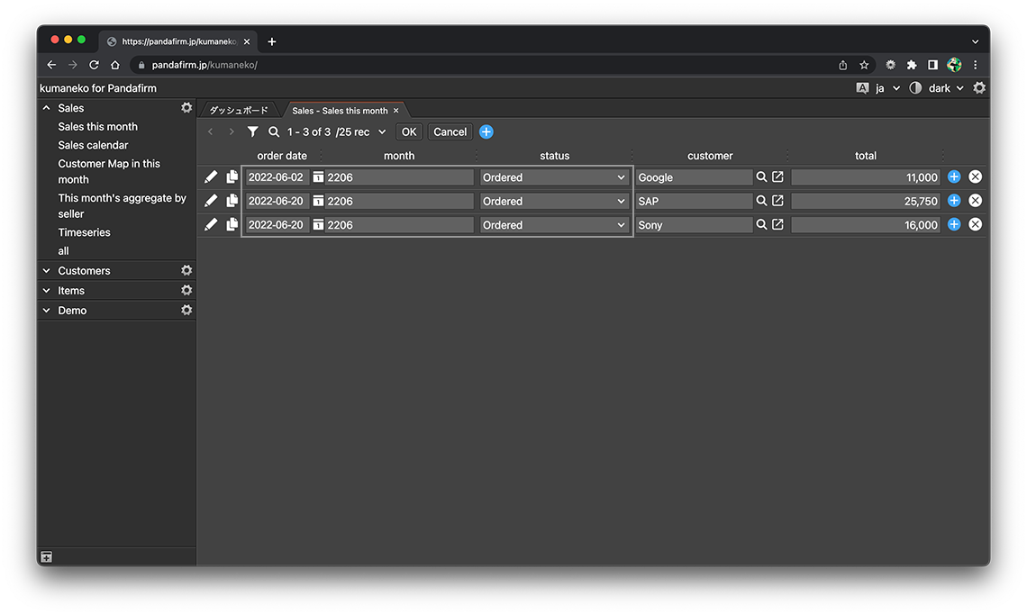 ボタントリガーアクションの場合は、レコード追加画面や編集画面、読み取り専用一覧形式ビューに配置されたボタンを押下することで、アクションが実行されます。
