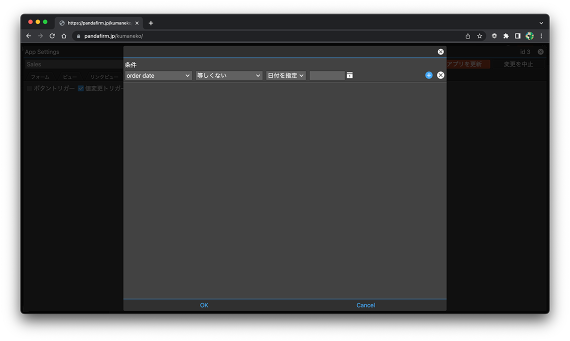 設定が完了したら、「OK」ボタンを押下し、アプリ設定画面の「アプリを更新」ボタンを押下します。