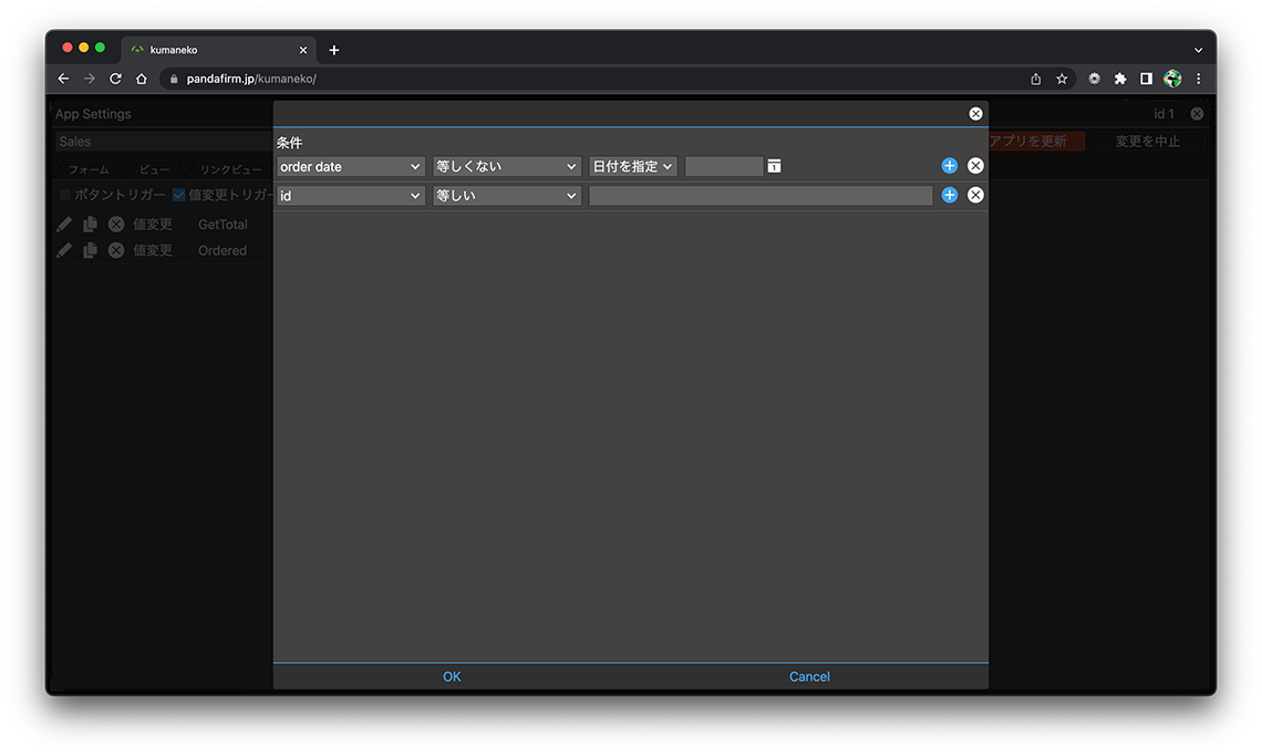 設定が完了したら、「OK」ボタンを押下し、アプリ設定画面の「アプリを更新」ボタンを押下します。