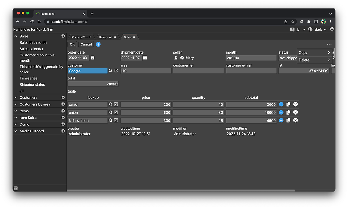 値変更トリガーアクションの場合は、レコード追加画面や編集画面を開いたり、フィールドを編集したりしたタイミングで、アクションが実行されます。