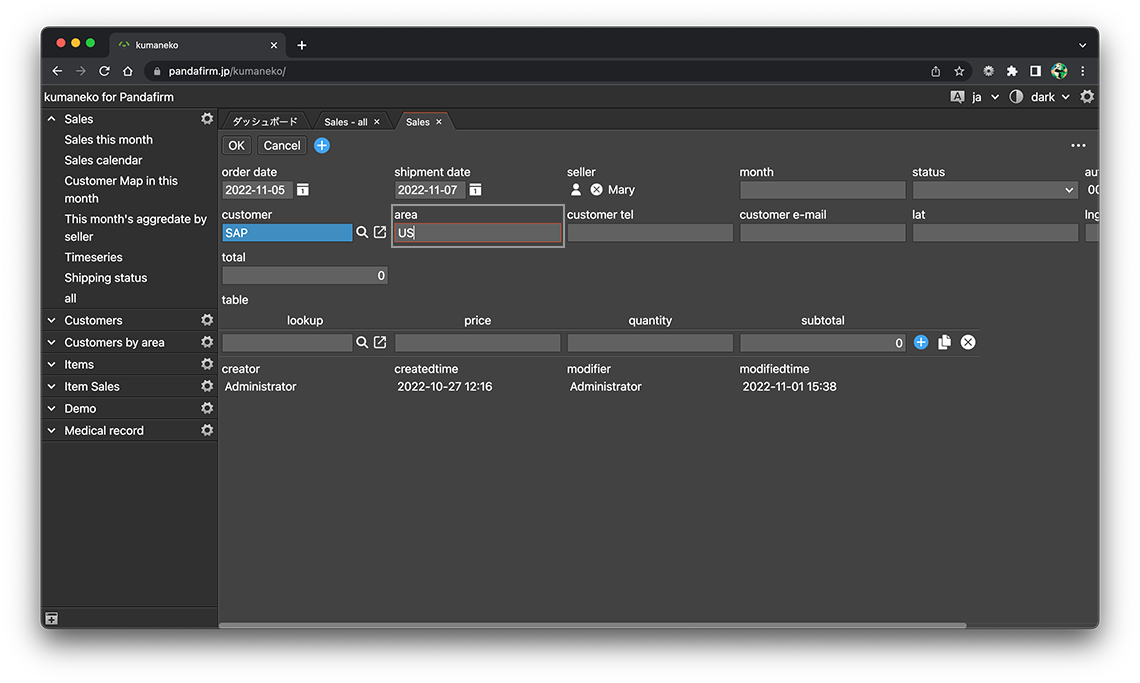 値変更トリガーアクションの場合は、レコード追加画面や編集画面を開いたり、フィールドを編集したりしたタイミングで、アクションが実行されます。