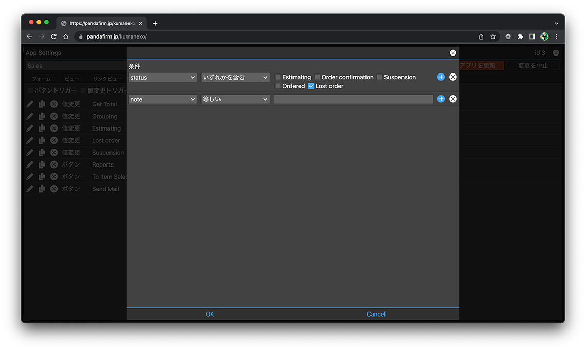 設定が完了したら、「OK」ボタンを押下し、アプリ設定画面の「アプリを更新」ボタンを押下します。