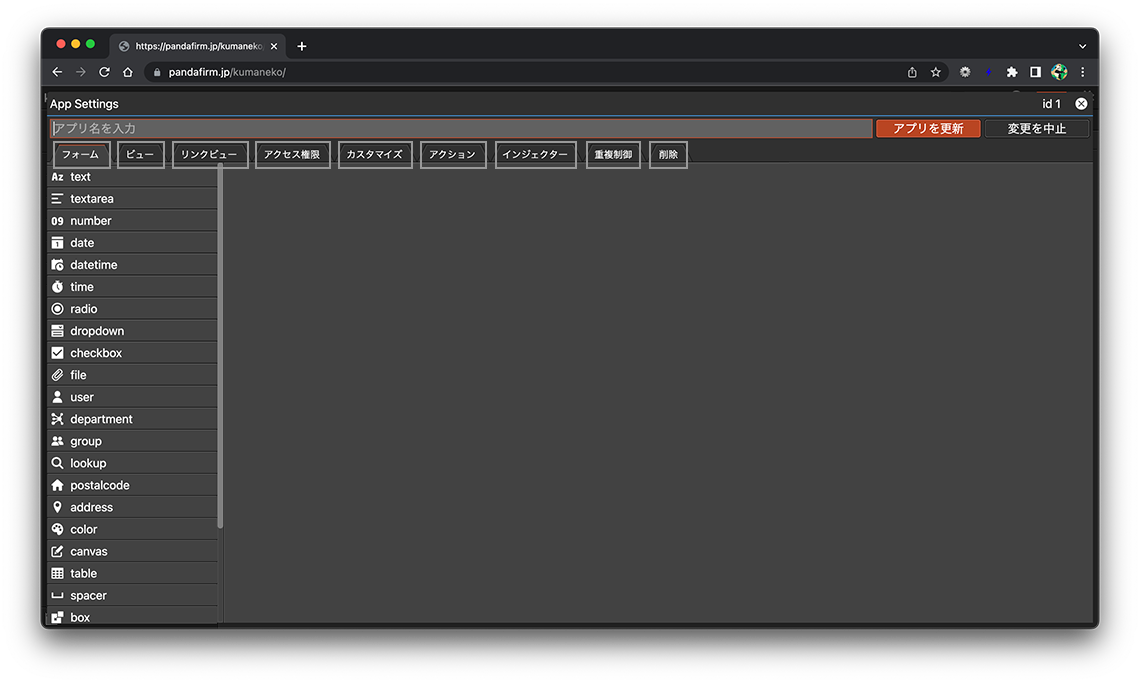 kumanekoは様々な業務に合わせたアプリを作成することが出来ます。アプリを作成するには、画面左下の「アプリの追加」ボタンを押下します。