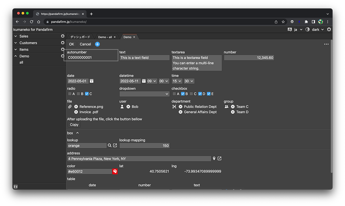 レコードの保存時に、指定した条件に合わせて採番が行われます。