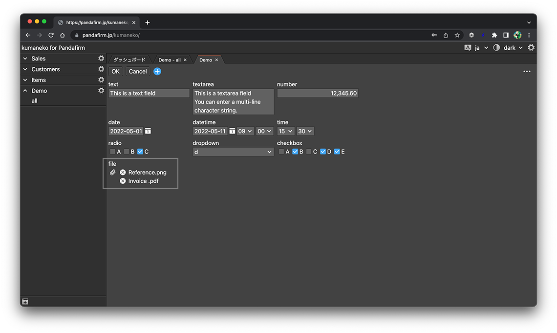 フィールドのDOM要素を取得したり、レコードを操作したりといったカスタマイズを行う場合は、このIDを使用します。
