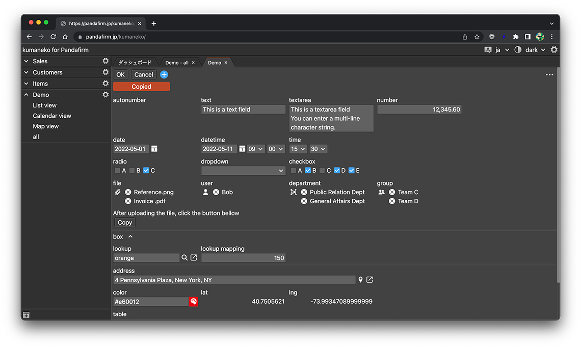 レコードは編集型の一覧形式ビューやレコード編集画面から複製することが出来ます。