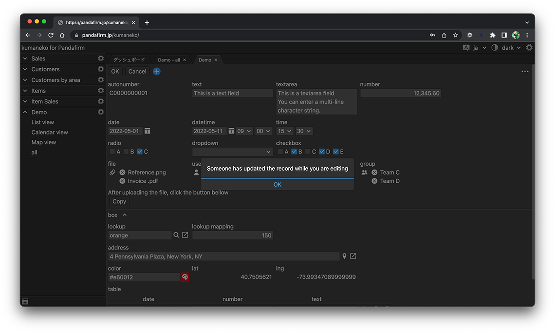 複数のユーザーが同時に同一レコードを編集しようとした場合、最初に保存したユーザーの操作が優先されます。